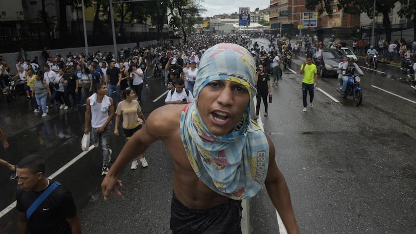 El descontento por el resultado ha echado a la gente a las calles. Hordas de jóvenes rodeaban el lunes por la noche el Palacio de Miraflores, la residencia presidencial, en Caracas. La ciudad estaba tomada por las fuerzas de seguridad chavistas. Las protestas empezaron en los balcones de las casas, a los que la gente salió para gritar fraude y blandir cacerolas. Más tarde, se trasladó a las avenidas, que fueron cortadas por jóvenes en motos que enarbolaban banderas de Venezuela. Levantaron fogatas en mitad de la carretera y a la hoguera echaron fotos y propaganda electoral de Maduro.