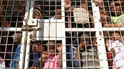 Nadie sube con ganas a los camiones de deportación. Mucho menos para ser devuelto a un país en el que prácticamente la mitad de la población pasa hambre. Pero, según el comunicado de Amnistía, las personas son habitualmente golpeadas y subidas de manera forzosa y “hasta tienen dificultades para respirar” del hacinamiento de estos buses que cargan hasta 90 personas en un vehículo con capacidad para 40. “Son dejadas ahí con altas temperaturas, durante horas, antes de ser trasladadas al centro de interdicción, sin acceso a agua, servicios sanitarios o alimentación, poniendo en grave riesgo su integridad”, narra el escrito publicado este miércoles. Una vez dentro de los centros, la situación no mejora. Continúa el hacinamiento, no hay acceso a agua ni alimentación y se les restringe hablar con familiares o abogados.