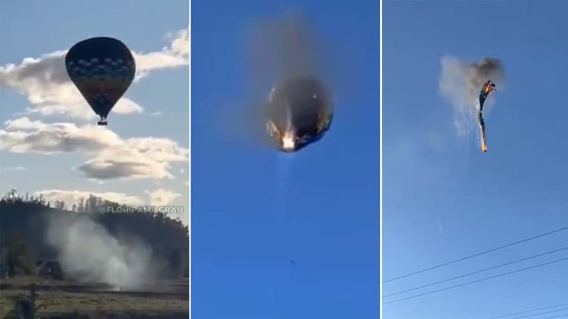 Las imágenes captan el momento en que el globo empieza a arder y el cesto cae al suelo con los pasajeros