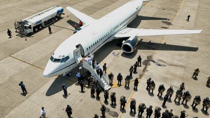 El chavismo ha denunciado la deportación de venezolanos a El Salvador y las detenciones de migrantes en Estados Unidos, señalando que se trata de secuestros. El pulso ha enfrentado a ambos Gobiernos en una guerra de declaraciones. Hace unos meses Bukele propuso a Maduro liberar los venezolanos recluidos en el Cecot a cambio de un número similar de presos políticos en Venezuela, que ha aumentado significativamente desde las cuestionadas elecciones presidenciales de las que se cumplen un año la próxima semana. El Gobierno venezolano ha calificado de chantaje el desafío del mandatario centroamericano. Las autoridades del chavismo, desde los cuerpos policiales y de inteligencia hasta el aparato judicial, han intensificado la persecución de opositores en los últimos meses a los que acusa de terrorismo, instigación al odio y traición a la patria. Las organizaciones defensoras de derechos humanos contabilizan en 948 el número de presos políticos en Venezuela.