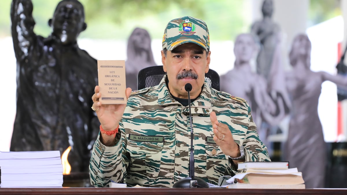 Maduro hizo estas afirmaciones vestido con traje de campaña en la sede de la Academia Militar de Venezuela, acompañado del ministro de la Defensa, Vladimir Padrino López, y rodeado de la alta oficialidad del país, en el marco de la inauguración de 5.333 Unidades de Milicia al Combate, englobadas una estructura que el chavismo llama Base Popular de Defensa Integral.
