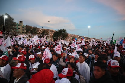 Su candidato a vicepresidente, Juan Pablo Velasco, también vestido con un poncho y, además, con un casco minero, se aseguró de dejarlo claro: “Todo lo demás es continuidad de 20 años y no lo vamos a permitir”.