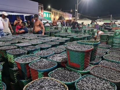 Cada noche, el puerto de Belém, en plena Amazonía brasileña, se convierte en un bullicioso mercado teñido de púrpura. Es el color del açaí, el fruto de una palmera tropical que en los últimos años se ha puesto de moda en medio mundo por su alto valor nutricional. Los barcos han cruzado las aguas del estuario del Amazonas repletos de cestas a rebosar con los frutos que se han cosechado ese mismo día. Al caer la noche, ya en tierra, hay que darse prisa, porque el fruto no aguanta bien el calor, tiene que llegar cuanto antes a las plantas que lo procesan. En el muelle, los cestos se venderán a los intermediarios, se subirán a camiones y empezará así un viaje de éxito no exento de desafíos. Ya mueve 5.000 millones de reales (más de 900 millones de dólares) al año. El peligro ahora es no morir de éxito.