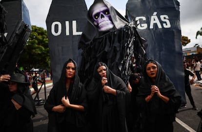 Cada vez que Brasil organiza una cumbre, sea de los BRICS, o el G20, se asegura de celebrar un foro social paralelo. En esta ocasión, la llamada Cúpula dos Povos (la cumbre de los pueblos) reunió a miles de personas en representación de 1.200 organizaciones sociales de más de 60 países. Parte de ellos arribaron por el río Amazonas en una flotilla. El sábado protagonizaron, una gran manifestación que partió a primera hora de la mañana para evitar el calor de Belém.