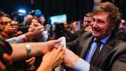El economista de ultraderecha Javier Milei ganó este domingo las elecciones presidenciales argentinas con más de 11 puntos de ventaja sobre su contrincante, el peronista Sergio Massa. Las causas que explican este triunfo son múltiples, pero hay dos factores decisivos: la grave crisis que sufre el país sudamericano, con una inflación interanual del 142% y unos datos de pobreza acuciantes, y el apoyo del expresidente Mauricio Macri. El líder de La Libertad Avanza optó además por moderar su discurso y pasó de blandir una motosierra, símbolo de los recortes del Estado social, a pactar con Patricia Bullrich, aspirante de la derecha tradicional eliminada de la contienda en primera vuelta. Las turbulencias financieras, sin embargo, no darán mucho margen al presidente electo y habrá que ver si mantiene su promesa de dolarizar la economía y cerrar el Banco Central. De lo que sí no hay duda es que a partir del 10 de diciembre, cuando Milei llegue a la Casa Rosada, Argentina se adentrará en una etapa desconocida.
