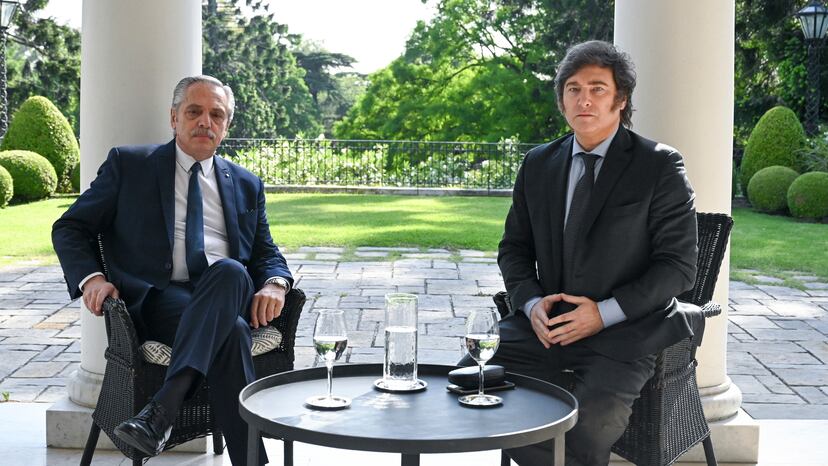 El presidente electo de Argentina, Javier Milei, ha iniciado este lunes una transición llena de obstáculos. Apenas pudo dar los nombres de algunos de sus futuros ministros y suspendió el encuentro que tenía acordado con el presidente, Alberto Fernández, disconforme con detalles como el lugar y los invitados para la foto. El encuentro se produjo, finalmente, esta mañana, en la residencia oficial de Olivos, donde Milei vivirá a partir del 10 de diciembre a las afueras de la ciudad de Buenos Aires. El presidente electo sí ha adelantado alguna de las que serán sus primeras medidas. Emprenderá, dijo, apenas asuma, una ola de privatizaciones que arrancará con la petrolera YPF, la empresa de energía Enarsa y el conglomerado de medios públicos.