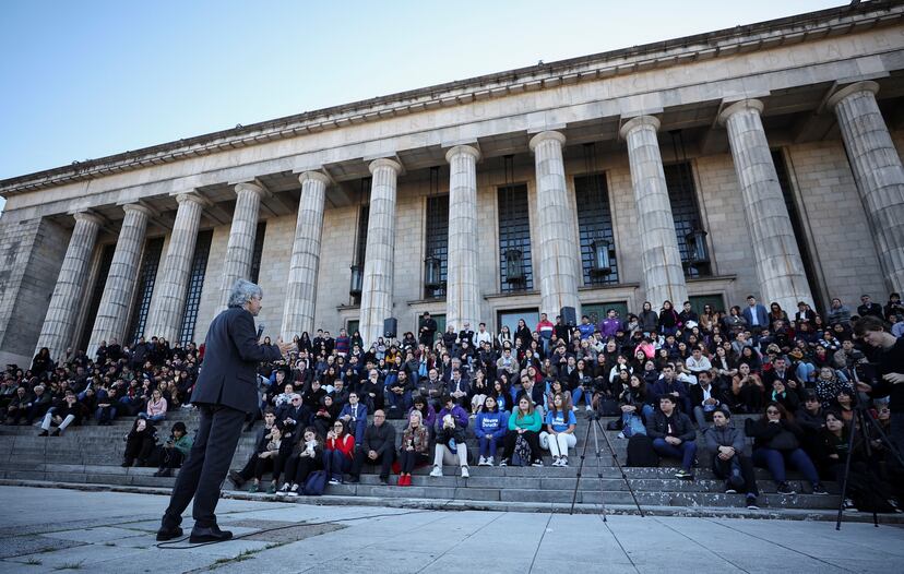 Los estudiantes de la Universidad de Buenos Aires toman clases en las calles para protestar contra los recortes