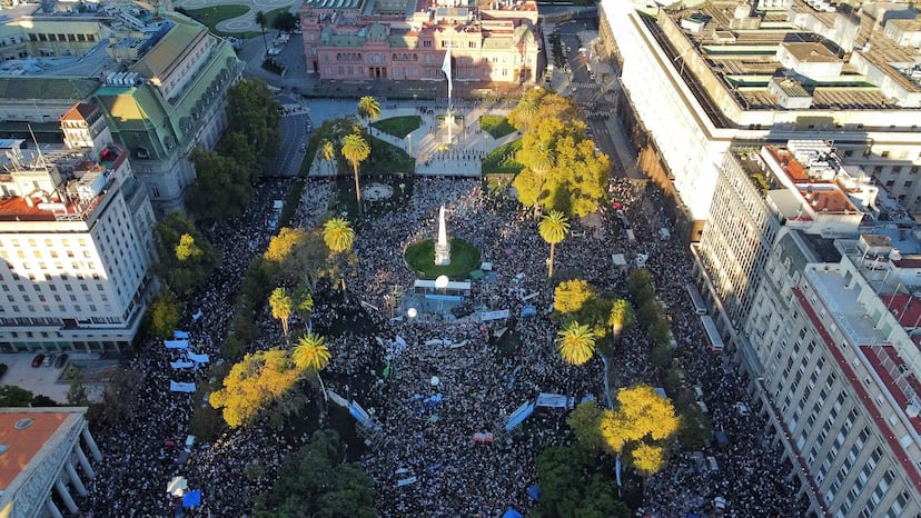 Ha sido una de las más multitudinarias desde el estallido social de la crisis del corralito de 2001-2002. Los organizadores calcularon que solo en la ciudad de Buenos Aires marcharon 800.000 personas, una cifra que la policía redujo a 150.000. Pero el diario La Nación cifró los manifestantes en 450.000, en base al análisis de imágenes tomadas por drones y sobre el terreno. En medio hubo otros hitos, como las manifestaciones feministas contra los feminicidios y a favor del aborto legal y la gran movilización de 2017 contra un fallo de la Corte Suprema que amenazaba otro de los pilares de la democracia argentina: la condena de los responsables del terrorismo de Estado de la dictadura.