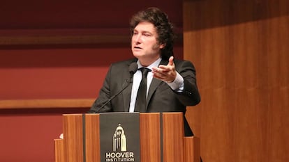 De visita en California, Estados Unidos, el presidente Javier Milei mantuvo reuniones con empresarios del sector tecnológico, en busca de inversiones para Argentina, y volvió a su actividad favorita: disertar sobre sus ideas “libertarias” y anatemizar cualquier forma de intervención estatal en la economía. Este miércoles fue en la Universidad de Stanford, donde habló durante casi una hora y pronunció una frase que ilustra su credo. “¿Ustedes se creen que la gente es tan idiota que no va a poder decidir?”, le preguntó a su auditorio. “Va a llegar un momento que se va a morir de hambre, con lo cual, digamos, o sea, va a decidir de alguna manera para no morirse. Entonces no necesito que alguien intervenga para resolverme la externalidad del consumo porque, a la postre, alguien lo va a resolver”.