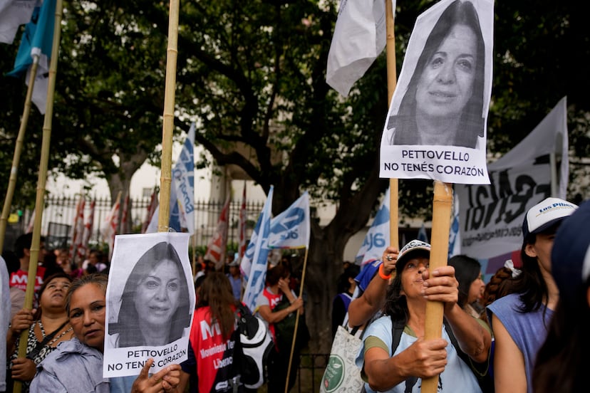 El megaministerio de Capital Humano se ha convertido en un dolor de cabeza para el Gobierno de Javier Milei. El presidente argentino fusionó en esa cartera cuatro ministerios del anterior Gobierno —Educación, Trabajo, Desarrollo Social y Cultura— y le agregó la Administración nacional de la seguridad social (Anses). Designó al frente de ese gigante a una persona que carecía de experiencia previa en la gestión pública: la periodista Sandra Pettovello, de 55 años. Pasados seis meses, el ministerio se tambalea golpeado por escándalos, una docena de dimisiones de altos cargos y críticas cada vez más duras contra su titular. Pero Pettovello mantiene por ahora el único apoyo que necesita, el de Milei. “Es la mejor ministra de la historia”, la defendió el mandatario ultraderechista este martes. “No la voy a entregar”, había advertido un día antes, en respuesta a los pedidos de renuncia que llegan desde la oposición.