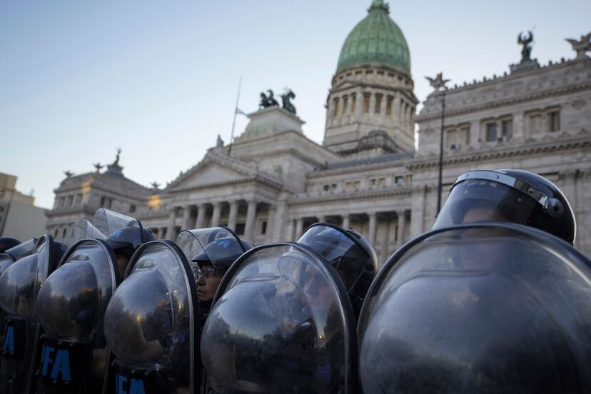 Como los rayos del sol cuando pasan por una lupa, las múltiples tensiones políticas y sociales que atraviesa la Argentina se concentrarán este miércoles en el Congreso de la Nación. Puertas adentro del edificio, en la Cámara de Senadores, el Gobierno de Javier Milei intentará dar un nuevo paso hacia la sanción de su primera ley en seis meses de mandato, la llamada Ley Bases, una norma que habilita el desguace del Estado y la privatización de empresas públicas, delega poderes legislativos al presidente, flexibiliza regulaciones económicas y laborales, así como concede beneficios impositivos a grandes empresas, entre otras medidas. Se prevé una extensa sesión parlamentaria de resultado aún incierto, aunque la administración ultraderechista confía que será favorable. Afuera del Congreso, agrupaciones políticas y organizaciones sociales, mayormente identificadas con el peronismo y la izquierda, se manifestarán en rechazo a las medidas que impulsa Milei.