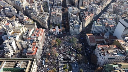 El peronismo está vivo en Argentina. Ese ha sido el mensaje que ha querido enviar con una masiva manifestación en defensa de Cristina Kirchner en la Plaza de Mayo de Buenos Aires, epicentro de las batallas sociales que supo liderar en el pasado y que ahora teme perder ante la ultraderecha del presidente Javier Milei.