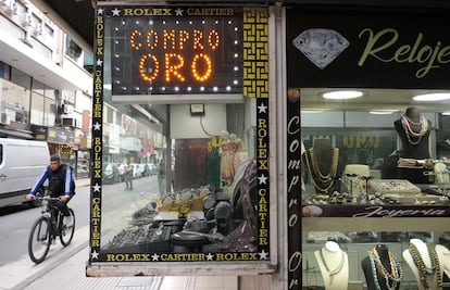 Es el mediodía de un jueves en la calle Libertad, un paseo de 400 metros del centro porteño lleno de joyerías, ubicado cerca del Obelisco. Muchos de los comercios exhiben carteles luminosos que dicen “compro oro”. En otras vidrieras se lee “compramos Rolex y todo tipo de relojes al mejor precio del mercado”, a pesar de no ser distribuidores oficiales de las marcas.