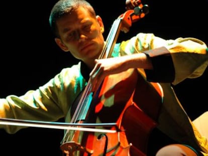 Sus manos se deslizan por las cuerdas y por la tabla como si se tratara de un trilero en busca de clientela fácil de disuadir