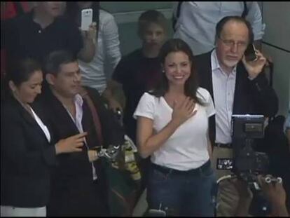 La diputada opositora regresa a Caracas y dice que seguirá siendo parlamentaria pese a que ha sido desaforada