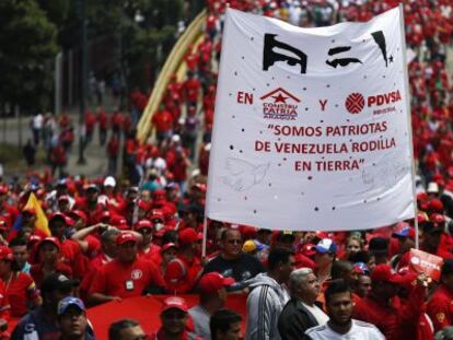Los trabajadores de la petrolera estatal encabezan una manifestación en apoyo del presidente para contrarrestar el peso que han ganado sus detractores