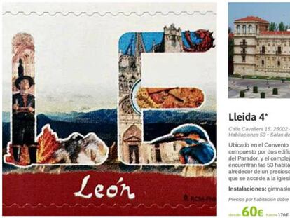 Tras la metedura de pata de Rajoy y el sello con la catedral de Burgos, ahora un catálogo vende el parador de Lleida con la foto del hostal de San Marcos