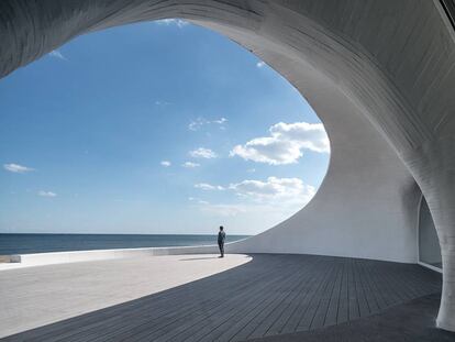 El museo de arte Dune, en la playa de la bahía Bohai, al norte de China, utiliza la arena como aislante para proteger a la vez el edificio y el ecosistema