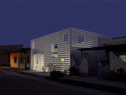 En Ecuador, una casa sencilla ventilada, protegida y convertida en un trabajo de Op Art gracias al uso de bloques blancos