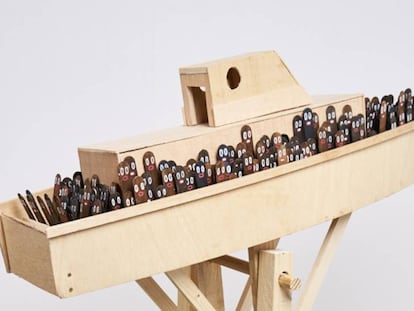 El artista Boris Hoppek expone en Sevilla su crítica a las políticas migratorias con una veintena de obras inéditas y su personaje Bimbo como protagonista de la muestra