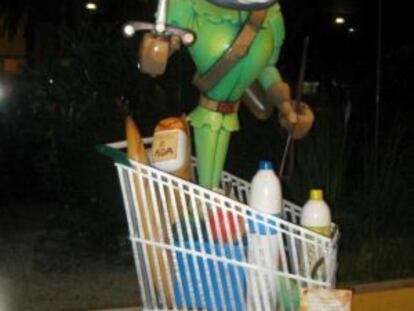 Sánchez Gordillo es reproducido sobre un carro de compra lleno ataviado de Robin Hood