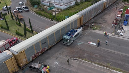 Un tren embiste un autobús de pasajeros en Atlacomulco, en imágenes