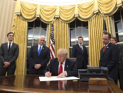 Creíamos que iba a gobernar a golpe de Twitter pero la pluma para firmar decretos es su verdadera arma