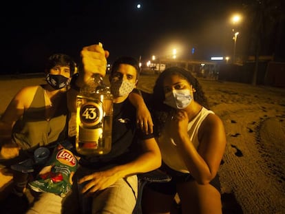 Decenas de jóvenes se saltan en la playa de Barcelona la prohibición de hacer botellón y alegan desconocimiento o falta de alternativas