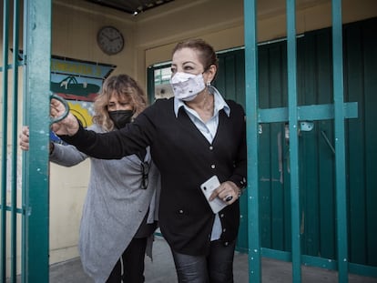 Las familias tendrán que asumir el costo del gel antibacterial y otros artículos de limpieza tras el reinicio de las clases presenciales. En las escuelas, las madres toman la temperatura y garantizan el lavado de manos de sus hijos