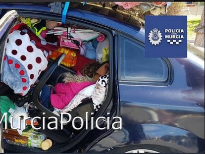 La policía de Murcia detiene un vehículo al observar que iba con exceso de carga y halla a una menor de dos años entre decenas de enseres amontonados en la parte trasera por su familia