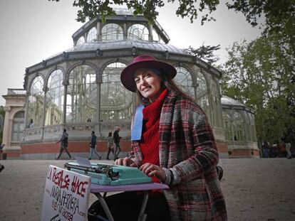 Nuria Herrera improvisa versos a partir de palabras que le sugieren visitantes del Retiro y el Rastro