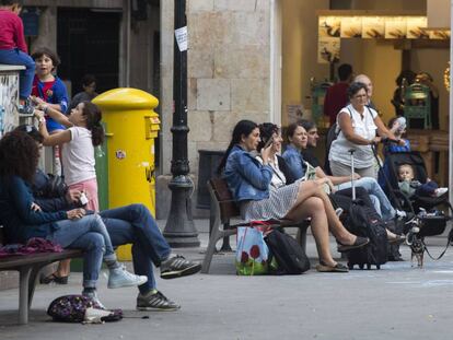 Barceloneses y turistas tratan de hacer vida normal, conectados a la jornada histórica en el Parlament