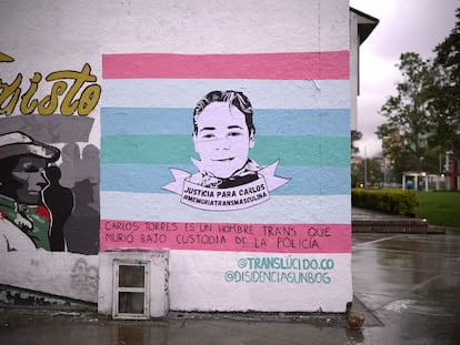 Colectivos y activistas pintan un mural en honor a Carlos Torres, un joven trans que murió en custodia de la Policía en Bogotá en 2015