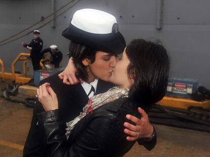 Marisa Gaetta y Citlalic Snell son soldados y sirven en el mantenimiento de navíos de guerra La primera volvía a puerto tras pasar 80 días en alta mar y abrazó a su novia al desembarcar