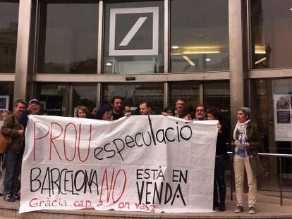 Un grupo de activistas de la PAH le hace un escrache silencioso al candidato del PP a la alcaldía de Barcelona