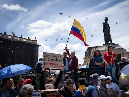 Unas 10.000 personas, muchas de ellas adultos mayores, se congregan en la Plaza de Bolívar de Bogotá, tras el llamado del presidente Gustavo Petro para defender uno de sus proyectos insignia