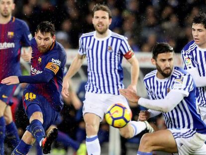 L'uruguaià marca el camí de la remuntada de l'equip blaugrana contra la Reial Societat a casa seva, on no guanyava des de la temporada 2006-2007