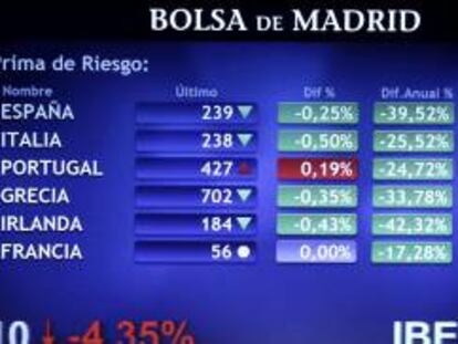 La prima de riesgo española sube a 222 puntos básicos y el bono roza el 4 por ciento