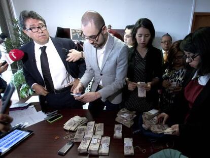 El jefe de la delegación más céntrica de la capital de México cuenta en público el dinero con el que, según él, intentaron comprarlo