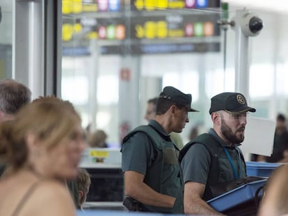 Sea cual sea su ideología, le va a tocar hacer cola en el Prat, los guardas no dejan pasar antes a los amantes de la unidad de España