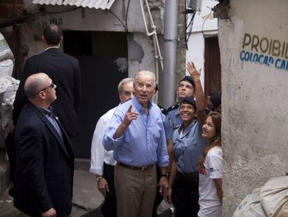 El vicepresidente de EEUU, Joe Biden, visita la emblemática favela de Santa Marta, conocida por ser la primera en recibir una Unidad de Policía Pacificadora