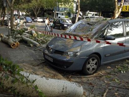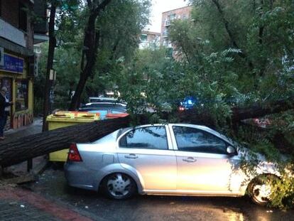 Una acacia destroza un coche estacionado en Carabanchel