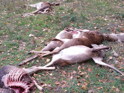 Numerosos ejemplares de ciervos fueron abandonados y arrastrados fuera del perímetro del coto de caza