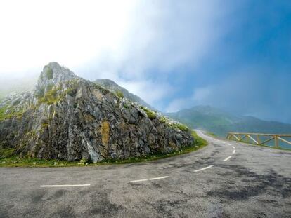 Ciclistas y visitantes motorizados se citan en esta empinada cima asturiana
