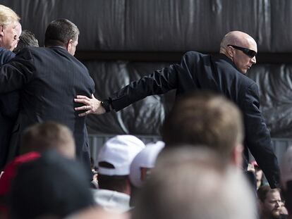 El servicio secreto protege al candidato republicano tras tratar de subir un manifestante al escenario