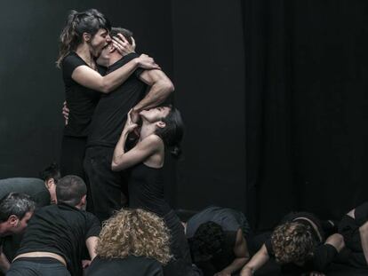 Describe un proceso comunitario de creación en un espacio vacío brookiano, donde la intensidad y el sentido se encarnan en el cuerpo de los actores