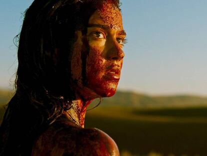 Revenge revela a una cineasta en pleno dominio de su lenguaje que va transformando su modo de filmar a su protagonista femenina en su progresivo paso de golosina erótica a ave fénix y diosa de la venganza