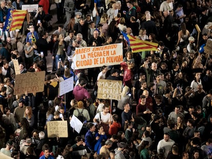 En la manifestación había carteles pidiendo a los Reyes Magos o al 2025 que se lleven la carrera política por delante de Mazón, como el lodo se llevó las vidas de 223 valencianos
