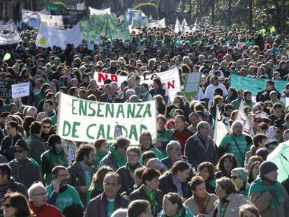 El Gobierno prevé que el peso de la enseñanza caiga del 4,9% al 3,9% del PIB en cinco años De infantil a la universidad, padres y profesores se unen en la protesta en todo el país