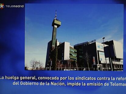 La cadena admite que los agentes han estado toda la jornada de huelga en las instalaciones Telemadrid suspende la emisión y en Canal Sur ocurrió lo mismo durante toda la noche La mayoría de las televisiones y radios públicas ven alterada su programación